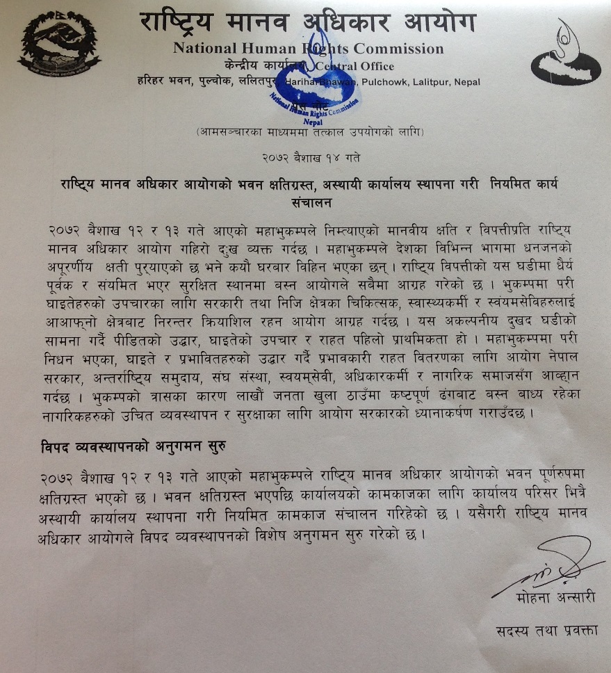 2015-05-03 NHRC issues directives to effectively distribute the relief materials to the earthquake victims English Version |