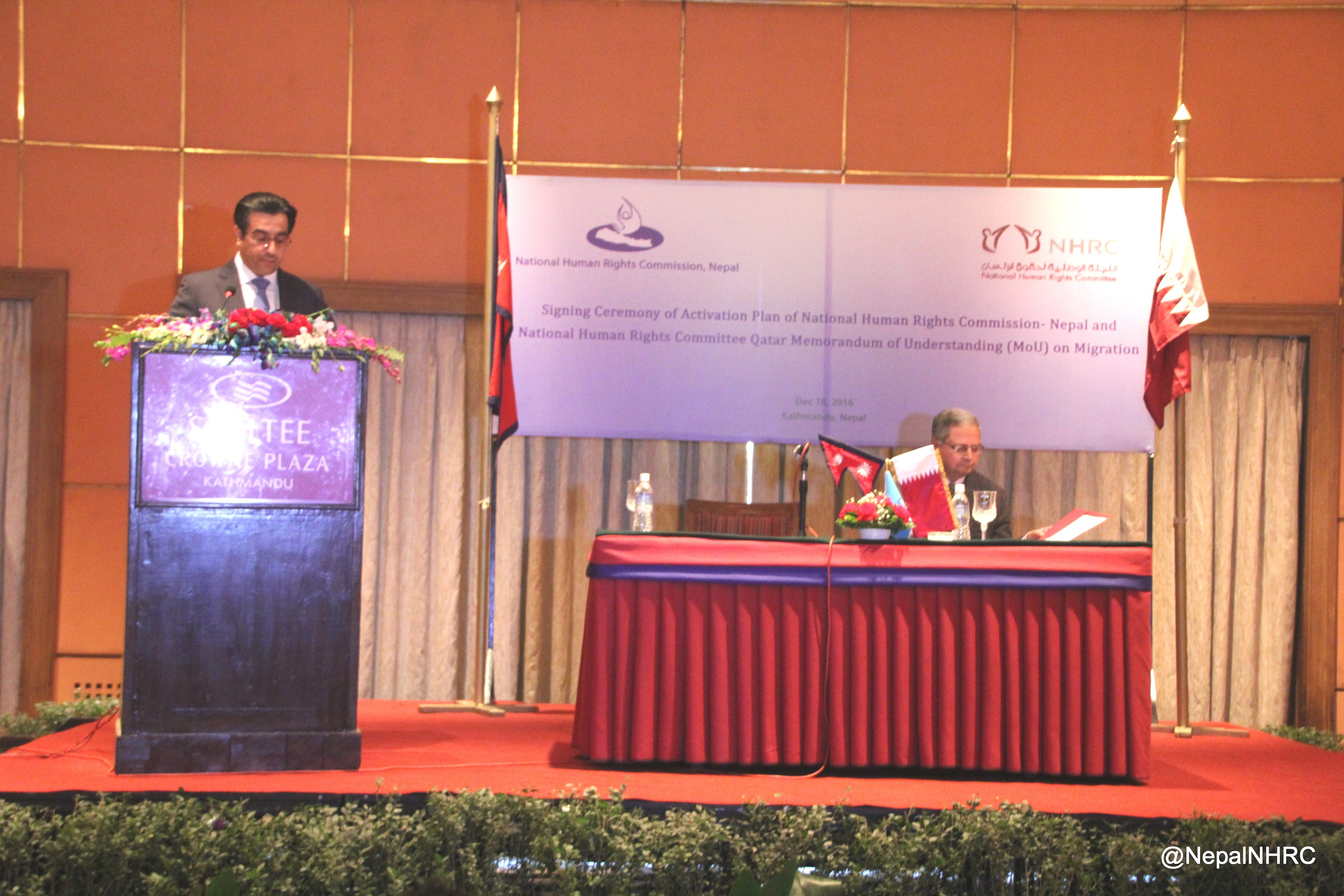 Signing Ceremony of Activation Plan of NepalNHRC & QatarNHRC MoU on Migration: 18 Dec 2016